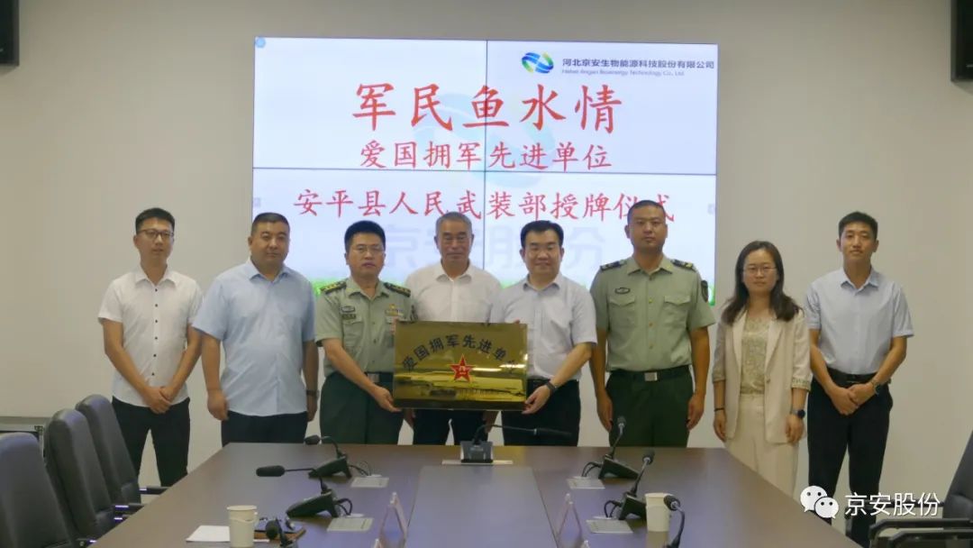拥军优属,拥政爱民是党在长期革命和建设中形成的优良传统,是广大军民在党的领导下的伟大创造,在经济社会发展和国防建设中发挥着重要作用。7月31日,中国人民解放军河北省安平县人民武装部向京安股份公司授予了“爱国拥军先进单位”荣誉牌。